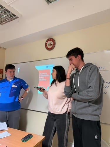 In Lesson E - EU Values, the classroom became a lively, interactive forum where students actively explored the core principles that unite Europe. Guided by the official learning guidelines, participants dived into a highly engaging educational game using specialized discussion cards. Instead of simply listening to lectures, students collaborated and analyzed complex scenarios that brought abstract political concepts to life. This hands-on workshop required critical thinking and teamwork, discovering shared European principles, a dynamic, fun, and deeply relatable experience.
