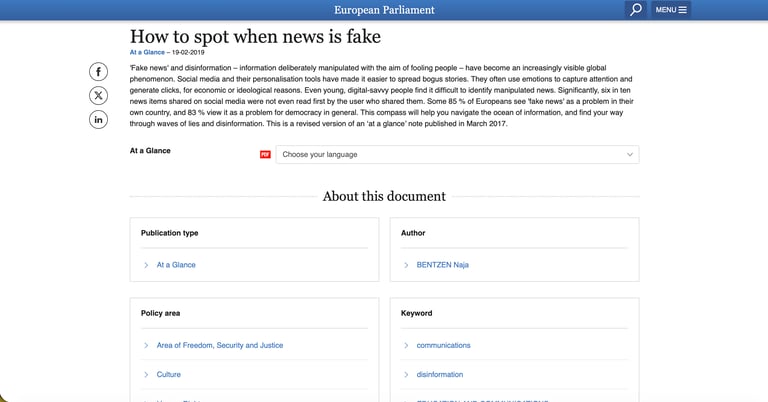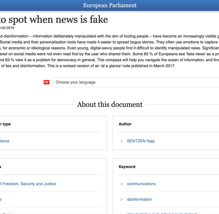 Website "How To Spot Disinformation" Report - Definition of Disinformation: Think Tank - European Parliament