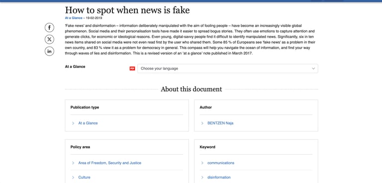 Website "How To Spot Disinformation" Report - Definition of Disinformation: Think Tank - European Parliament