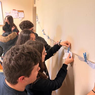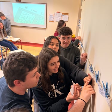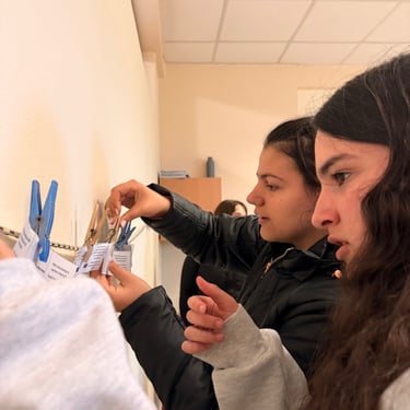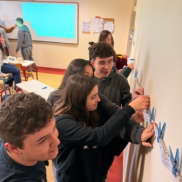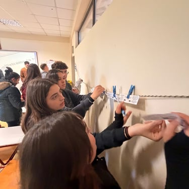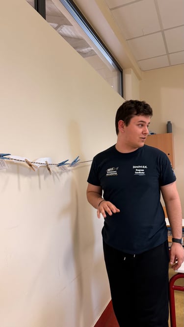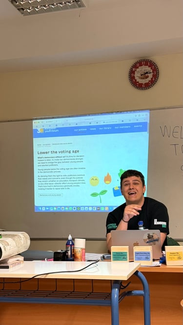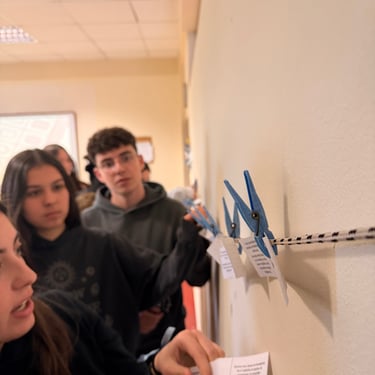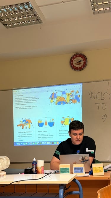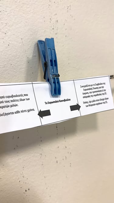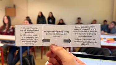 In Lesson G - All About: Democracy, students engaged in an interactive workshop designed to bring the principles of European parliamentary democracy to life. The session kicked off with energetic activities, including a physical "line-up" exercise to explore power dynamics and a competitive "washing line" game where groups raced to peg the stages of the EU legislative process in the correct order. Working in teams, students then tackled real-world issues by drafting legislative proposals on topics directly affecting young people, such as the voting and driving age. This active segment culminated in a lively "balloon debate," where participants had to argue for their chosen issue's survival, transforming abstract political theories into an engaging, hands-on challenge.