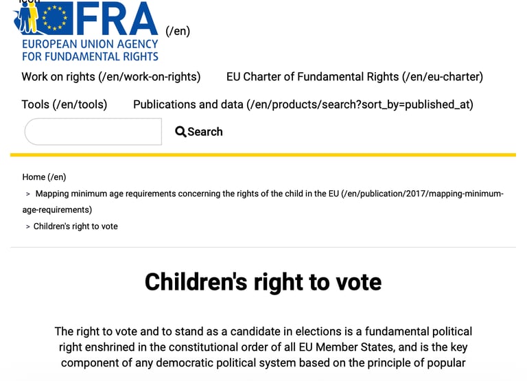 PDF "EU Drinking Age Statistics" & "Minimum EU Voting Age": European Union Agency for Fundamental Rights